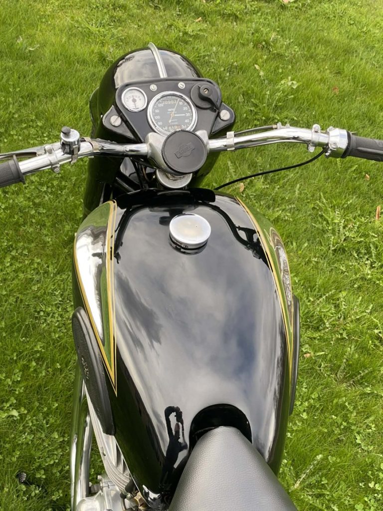Legendární čtyřválec v luxusním stavu po nedávné renovaci a GO motoru. Poslední model, vhodný nejvíce na ježdění s mohutným žebrováním. Možno namontovat i jedno sedlo. Plně funkční s doklady k přepisu jak na bílé, tak na vet. značky.